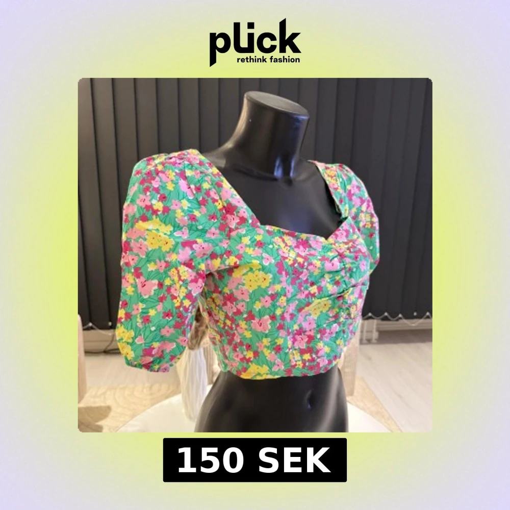 Säljer en färgglad blommig topp med puffärmar och rynkdetaljer framtill. Toppen har en fyrkantig urringning och är perfekt för sommarens alla tillfällen. Den har en härlig mix av grönt, rosa, gult och rött. Passar parfekt i S/M/L storlek.