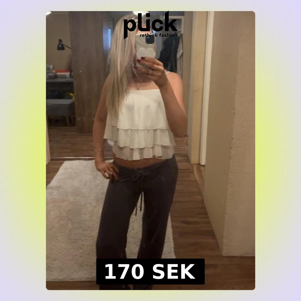 Säljer en vit crop top med flera lager volanger. Toppen har tunna axelband och en luftig, flowy passform som ger en romantisk vibe. Perfekt för sommardagar eller när du vill ha en lätt och söt look.