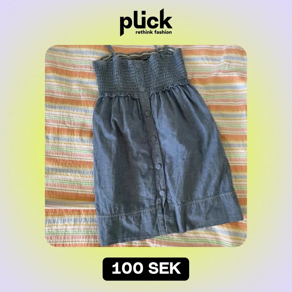 Ett blått linne från Illusion med smala axelband och knappar framtill. Klänningen har en smockad överdel och en lösare passform nedtill.