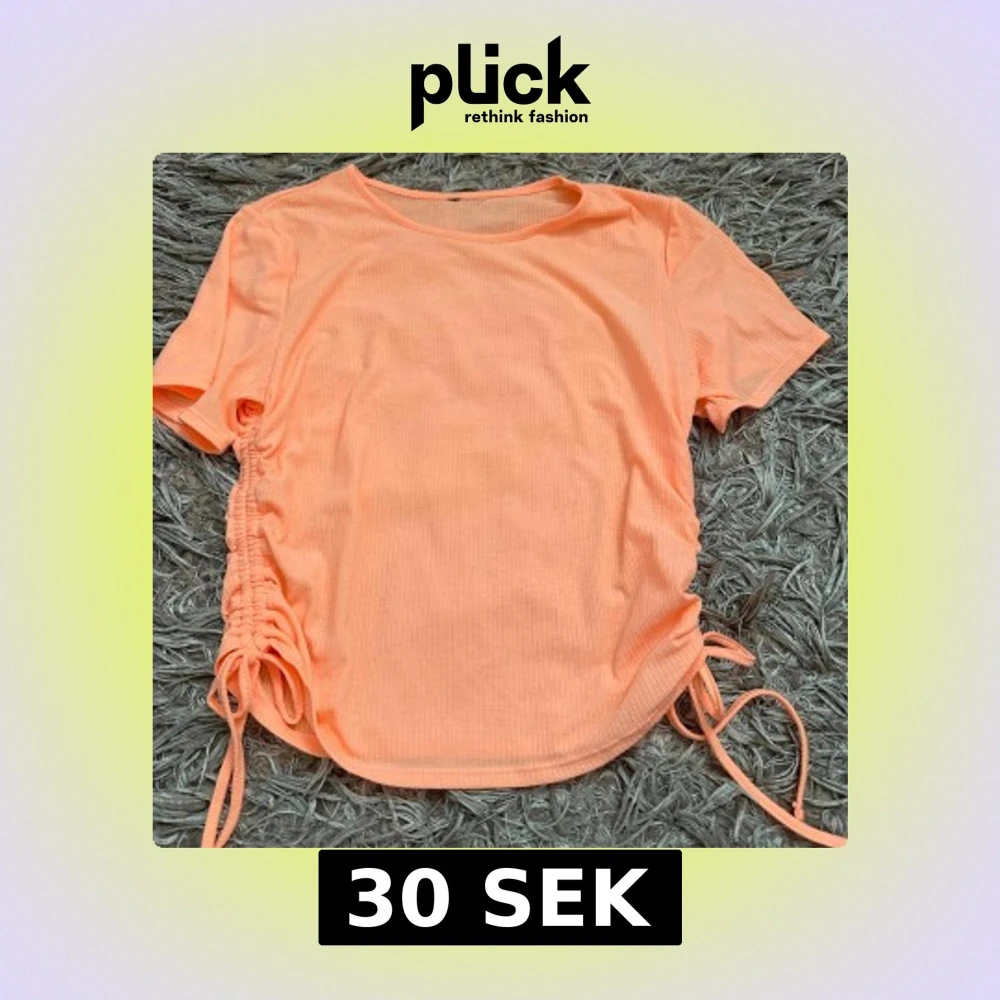 Trendig persikofärgad topp med korta ärmar och ribbad struktur. Toppen har snörning i sidorna som ger en snygg, justerbar passform. Storlek M