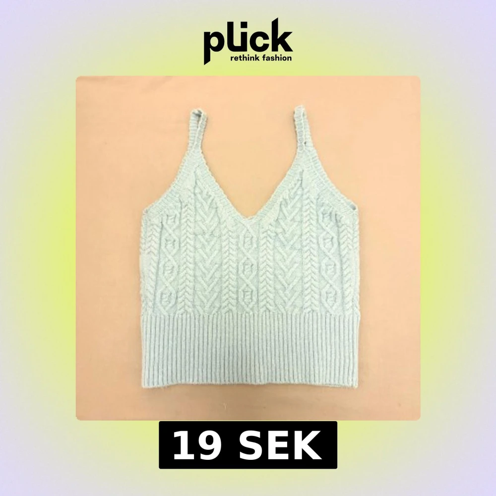 Snygg ljusblå stickad linnetopp med flätmönster och ribbad nederkant. Perfekt för en stilren och bekväm look.