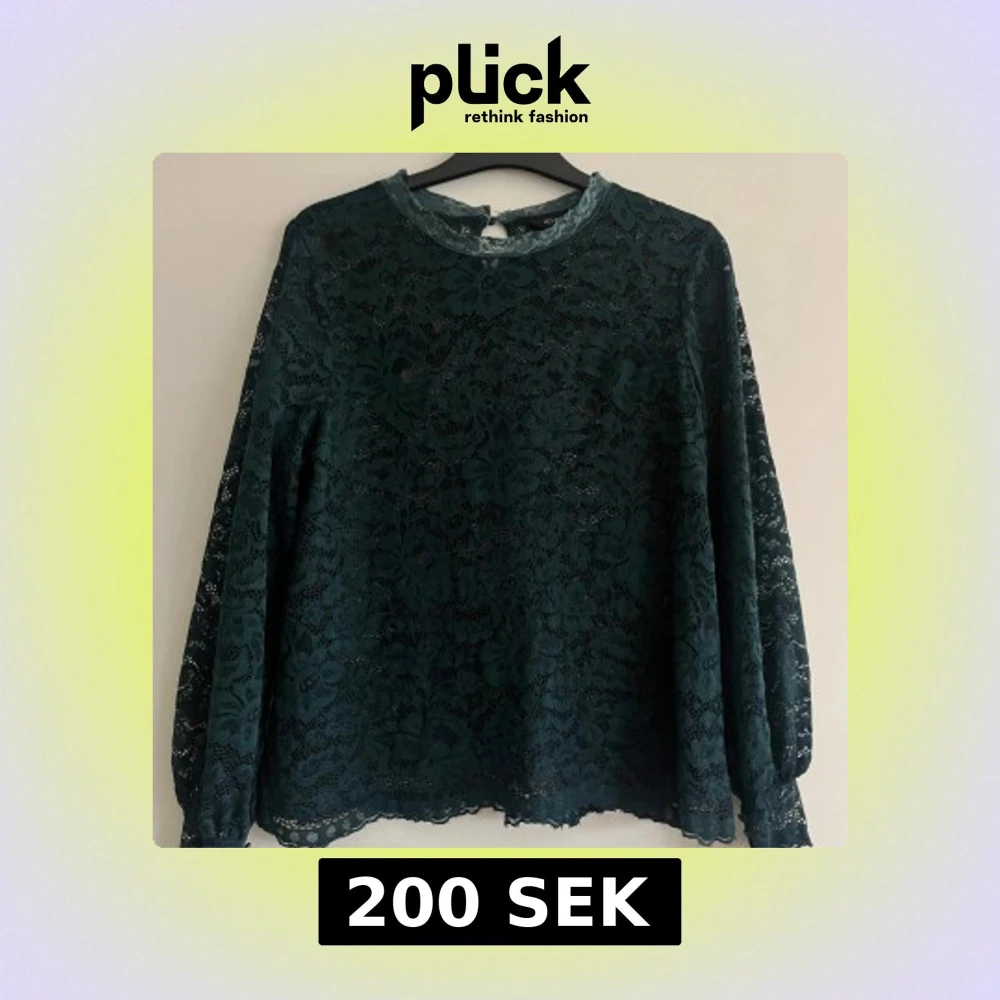 Elegant mörkgrön spetsblus från Happy Holly med långa ärmar och ett vackert blommönster. Perfekt för att ge en sofistikerad touch till din outfit. Blusen har en rund halsringning och en liten knappdetalj i nacken.