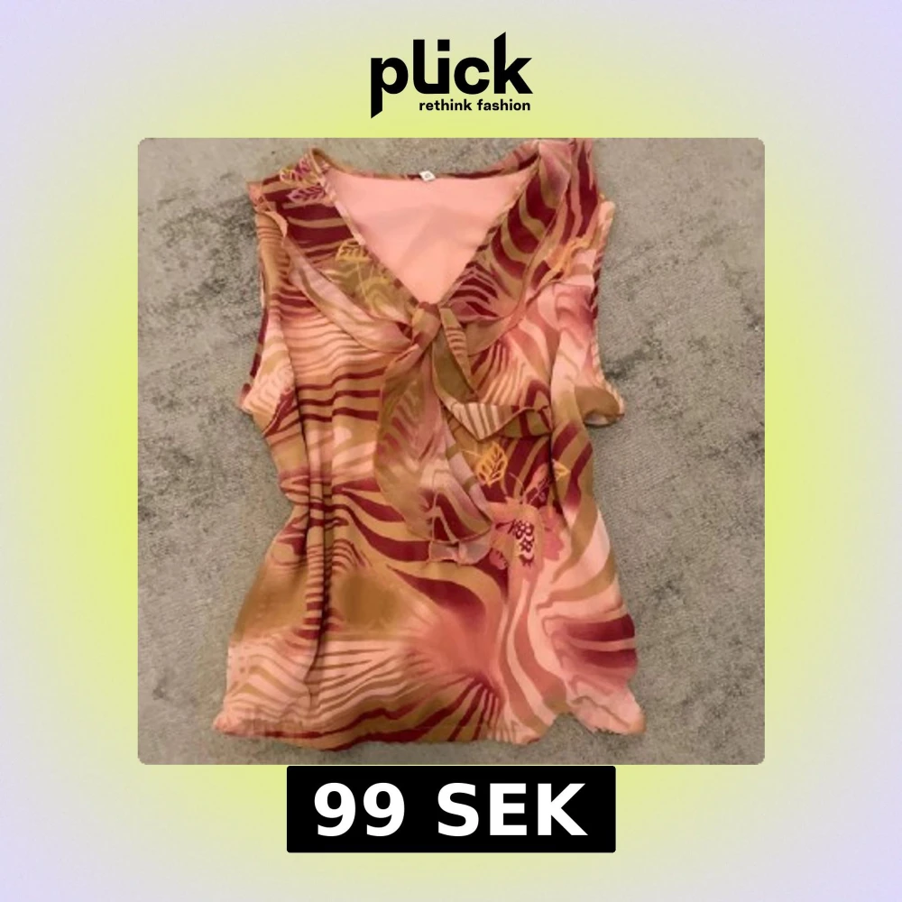 Mönstrad ärmlös blus med knyt vintage