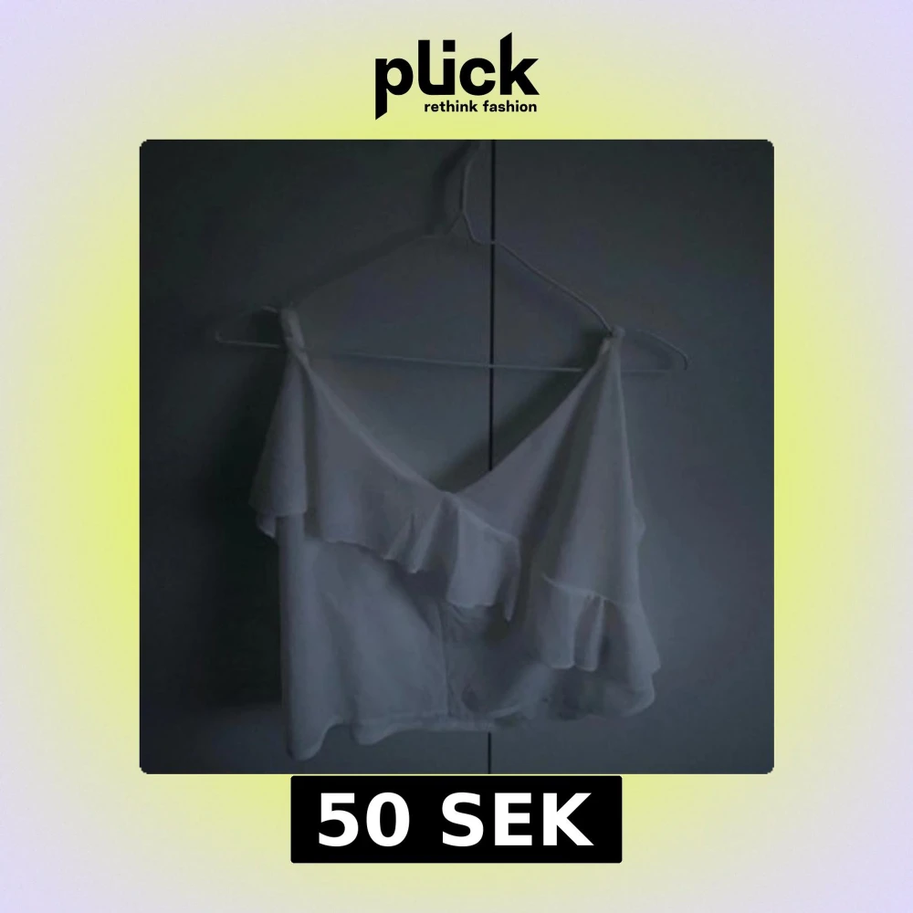 Säljer en söt vit croppad topp med volangdetaljer och en axel. Perfekt för sommardagar eller festliga tillfällen. Tunn och luftig, passar till både jeans och kjol.