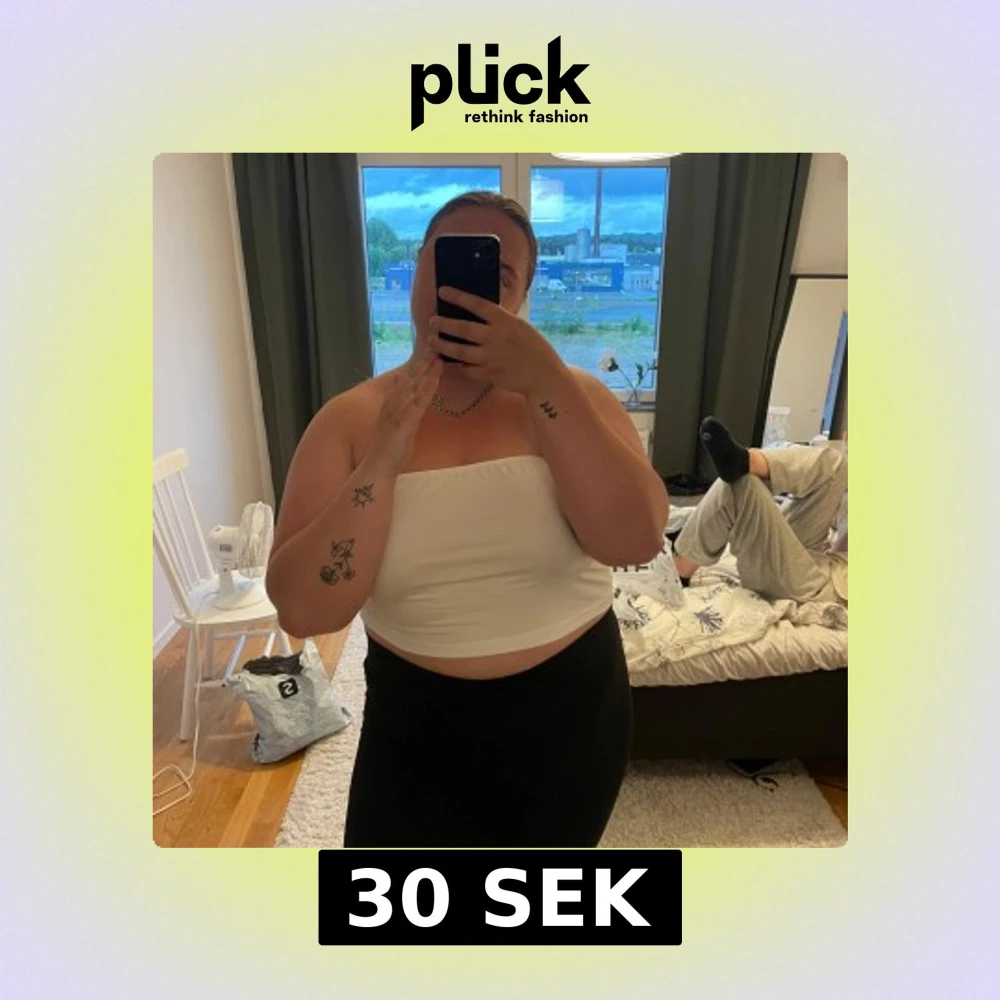 Säljer en enkel och fräsch vit bandeau tubtopp. Toppen är croppad och axelbandslös, perfekt för varma dagar eller när du vill ha en clean look. Sitter tight och är lätt att matcha med både jeans och kjol.