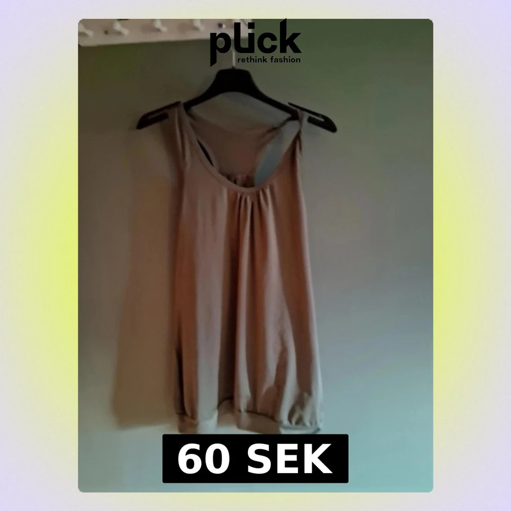 Säljer en beige ärmlös linnetopp med rund halsringning och lös passform. Toppen har breda axelband och lätt rynkning framtill för en avslappnad look. Perfekt på gymmet💕