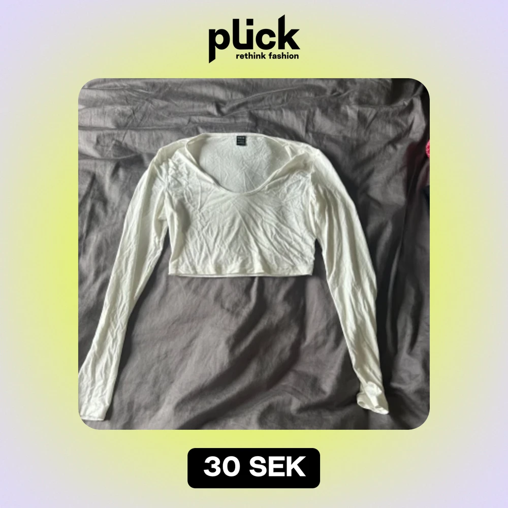 En vit croppad långärmad topp i storlek S. Toppen har en enkel design med en rund halsringning och är tillverkad i ett mjukt material.