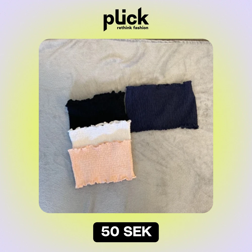 Den blå har ingen lapp kvar så vet inte vilken str det är eller vart den är från. Den svarta har tappat sömen lite men det syns inte på. Vet inte riktigt vilket märke det är det stod vara ”SOC”. Alla toppar för 40. Säljer dom inte stycket