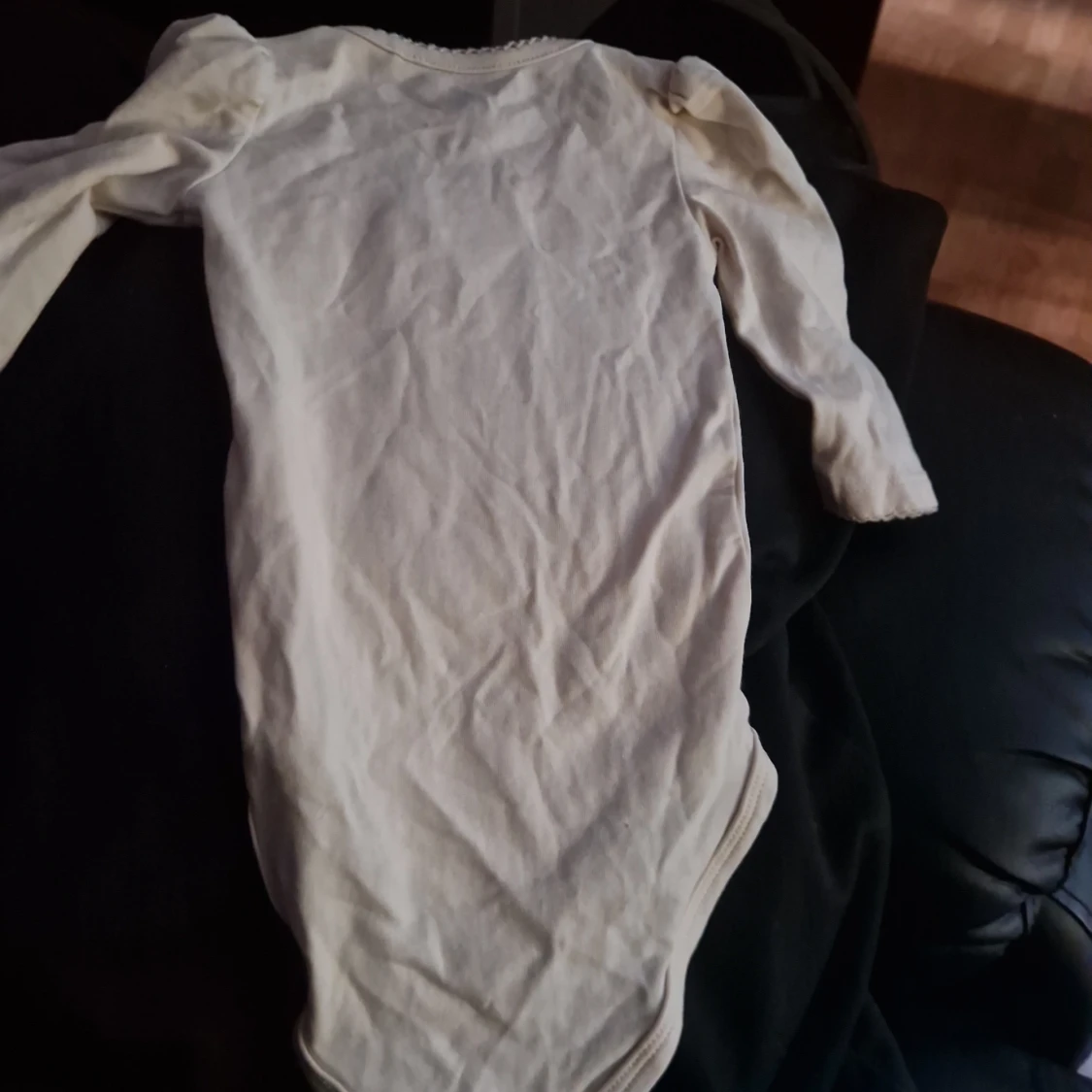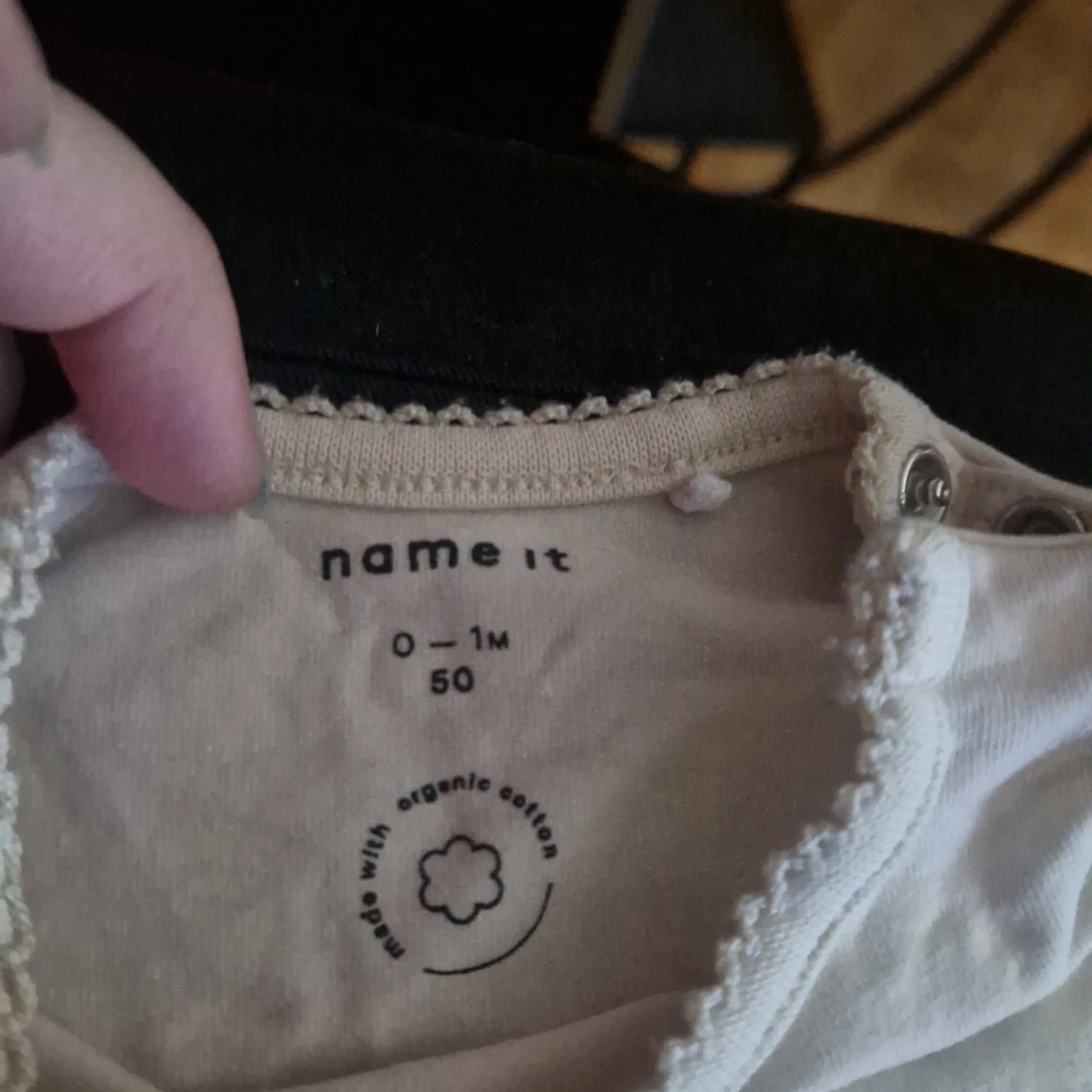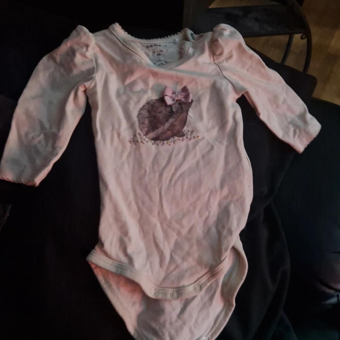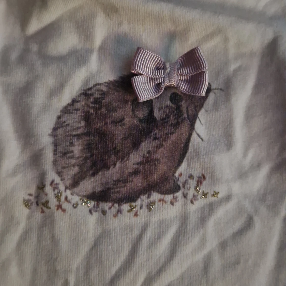 Naturvit långärmad body från Name it i ekologisk bomull. Framsidan har ett gulligt tryck av en igelkotte med en liten rosett i tyg och glittriga detaljer. Fina puffärmar och spetskant vid halsen. Perfekt för de allra minsta.