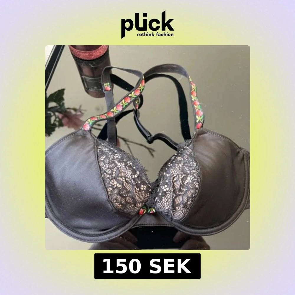 Snygg svart bh med spetsdetaljer och blommiga axelband. Perfekt för att ge en romantisk touch till din outfit. Axelbanden är justerbara för bästa passform.