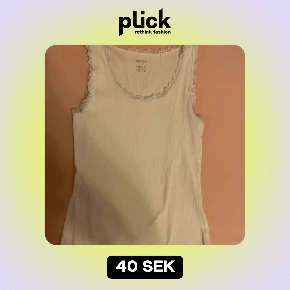 En vit ribbad linnetopp från Esmara med spetsdetaljer runt halsringningen och ärmhålen. Toppen är ärmlös och har en tight passform. Skriv om ni har några frågor 💕
