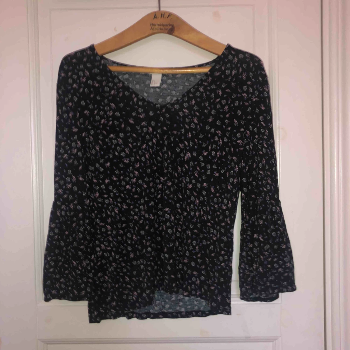 Mjuk, blommig trikåtopp med utsvängda armar. 60 kr plus frakt!