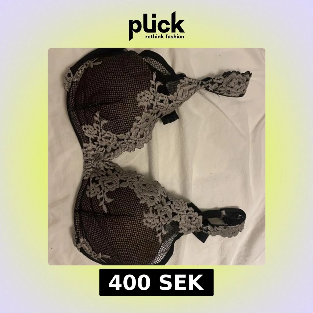 Säljer en svart bh med vacker grå spets och blommigt mönster. Storlek 80C