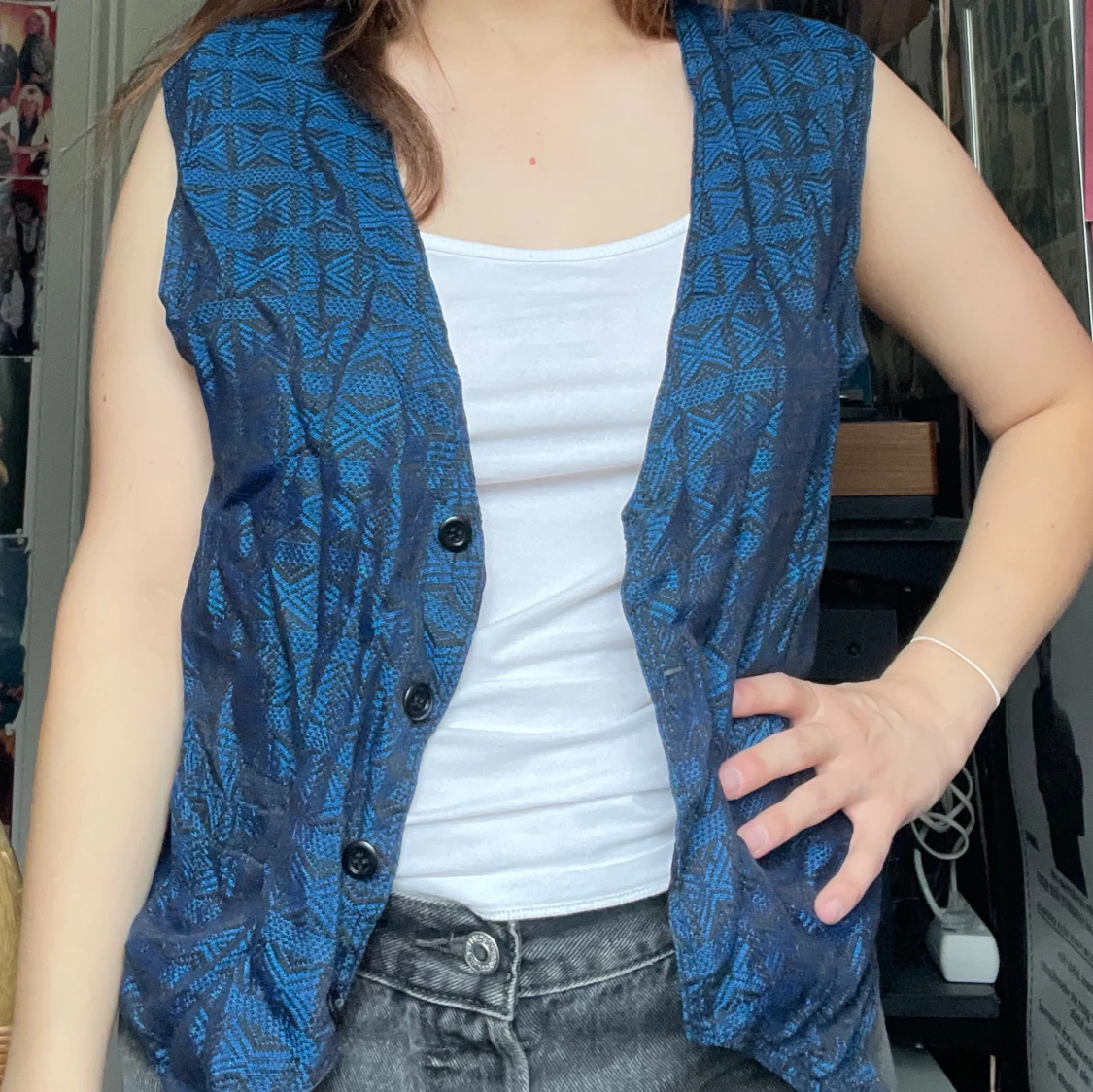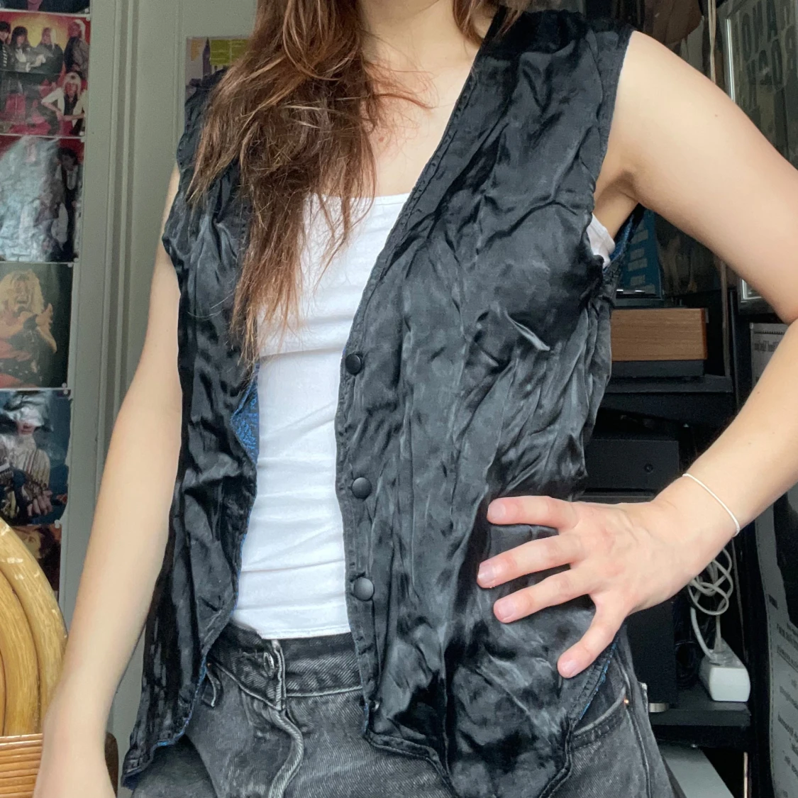 Väst som går att vända på, antingen blå eller svart! Jag kan mötas upp i Uddevalla centrum, annars fraktar jag gärna. Köparen står för frakten. (Står ej för postens slarv) katt finns i hemmet.
