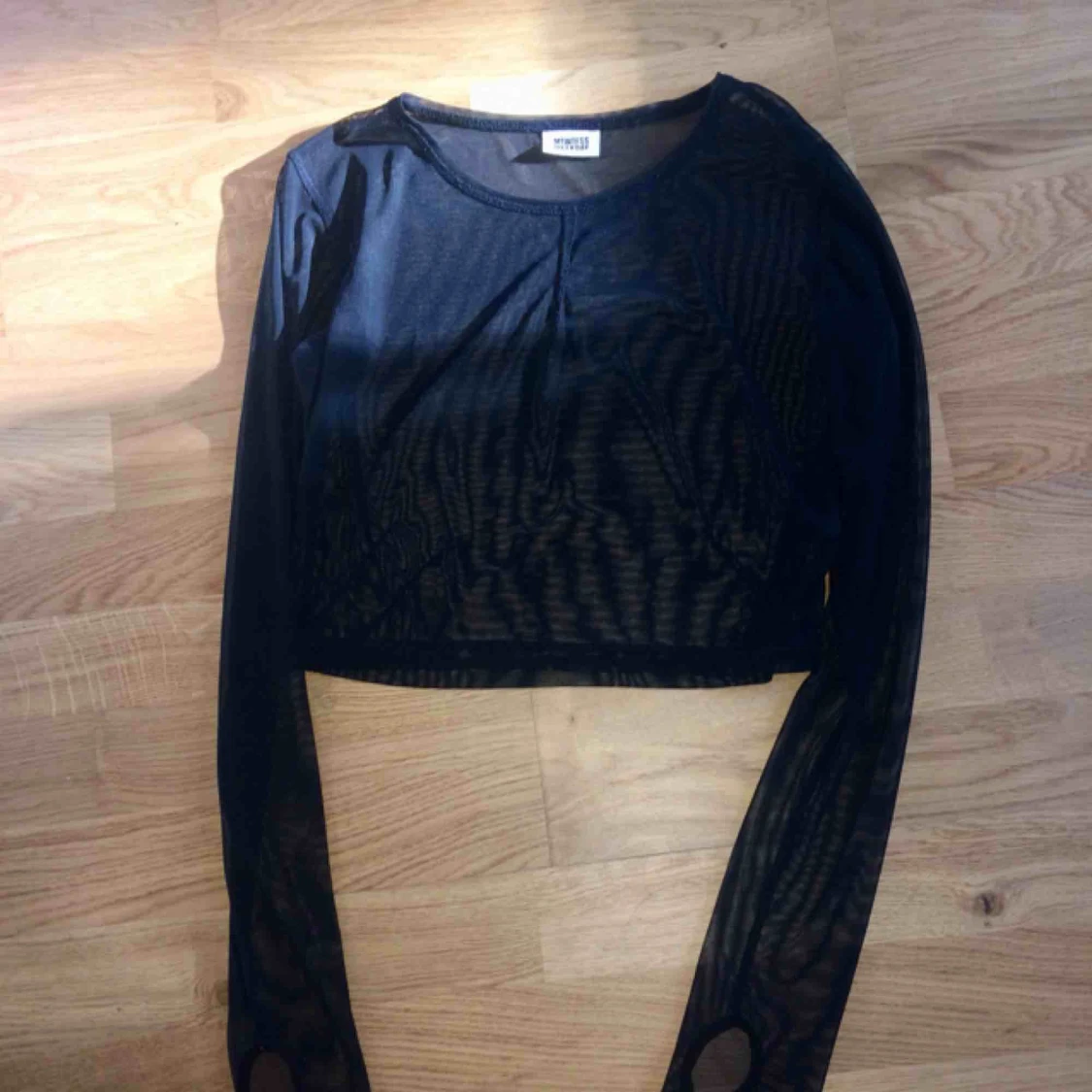 Meshtröja i croppad modell (magtröja) i mycket bra skick. Se bild 2 för detaljer på tumhål. 42 cm lång mätt från axeln. Finns på fler sidor! Frakten ingår även i priset.