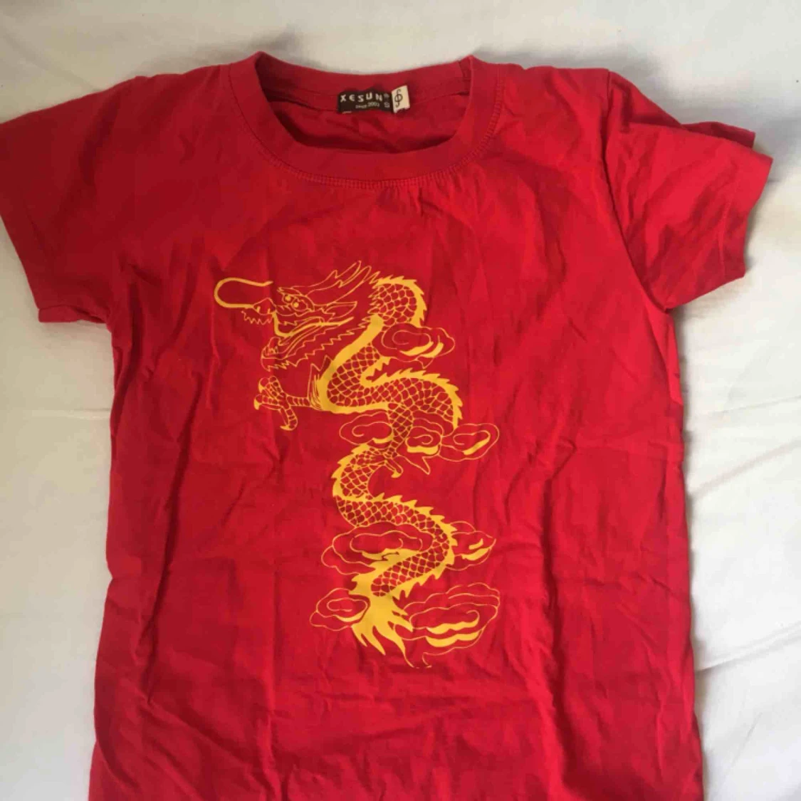Röd t-shirt med tryck. Köpt här på plick men aldrig använd. Står s som storlek men liten!