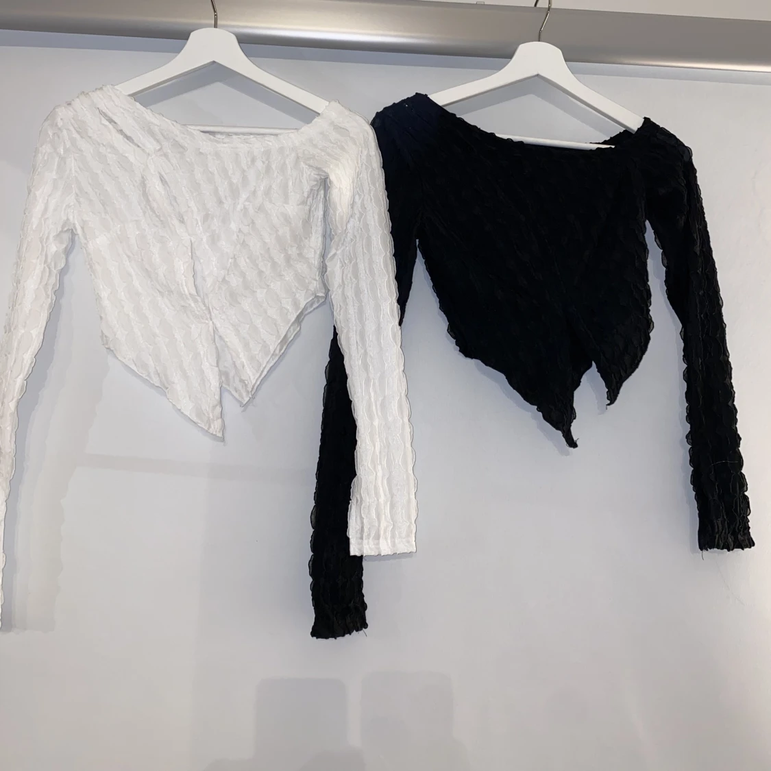 Två söta festliga toppar. Säljer båda tillsammans om man skulle vilja ha båda färger annars går det att bara köpa en utav dem. Endast testat.🤍🖤