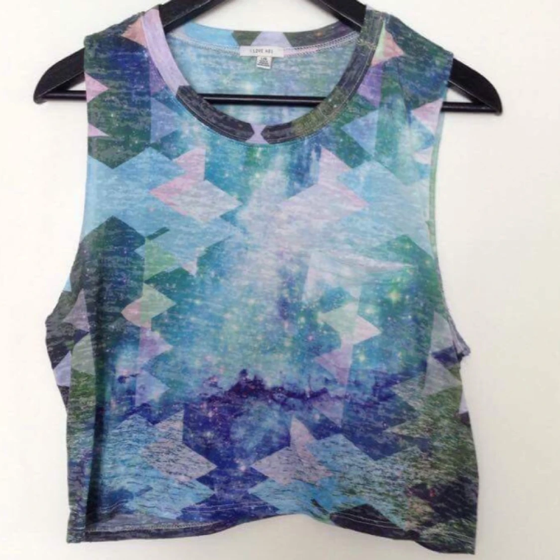 Crop top med space mönster i tunt material med ficka på bröstet.