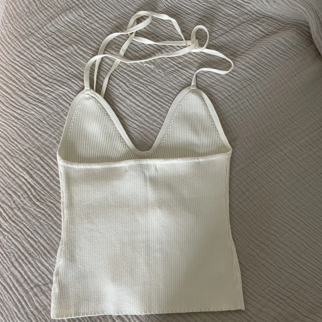 Rib Knit Halterneck Top från Adanola, färgen beskrivs som Marshmallow White. Storlek M men passar även S. Perfekt oanvänt skick med lapp kvar 💛