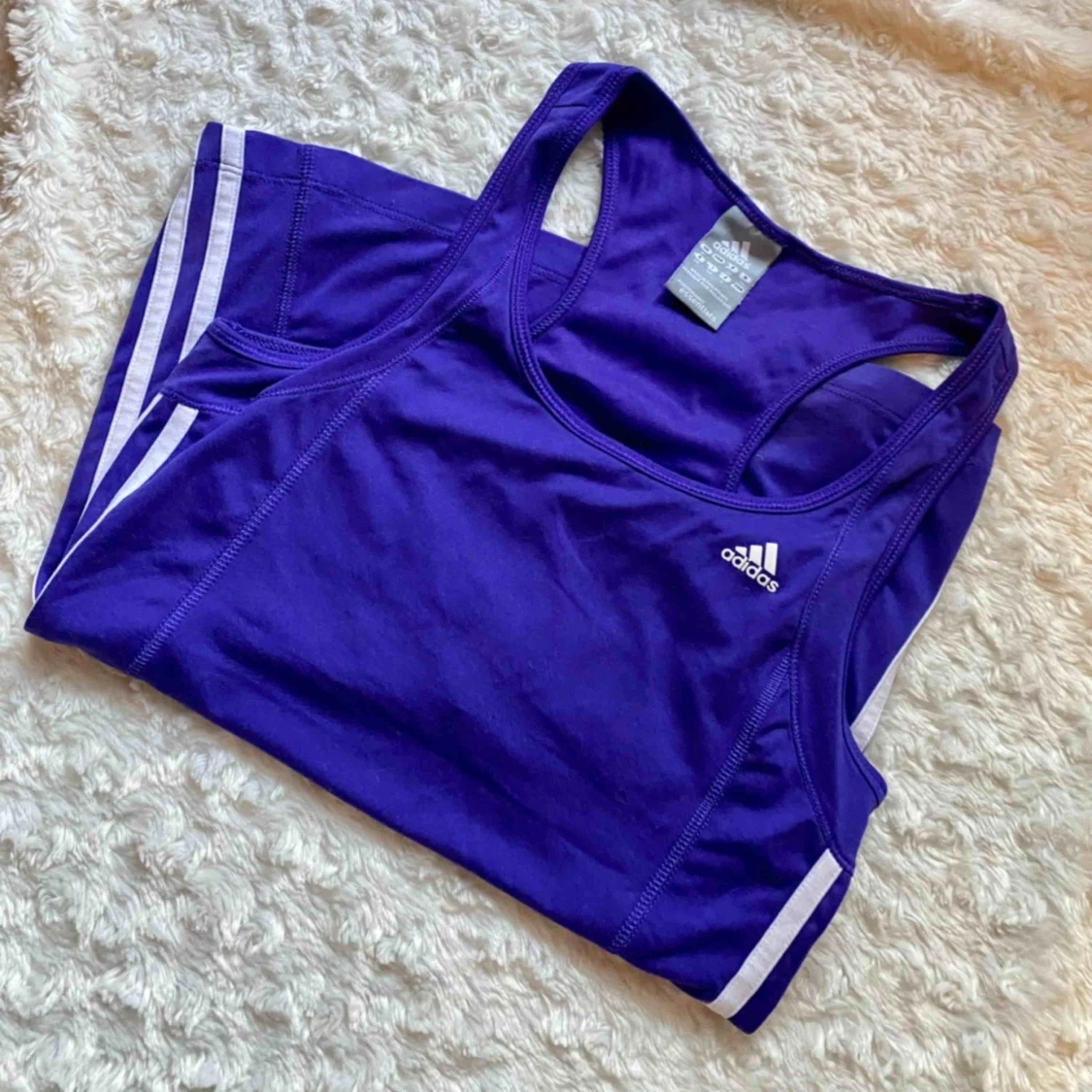 Säljer detta härligt färgglada träningslinnet från Adidas. Linnet är så bekvämt att träna i och har en inbyggd sport-bh. 🌸 I jättefint skick, fraktar eller möts i Sthlm/Uppsala.