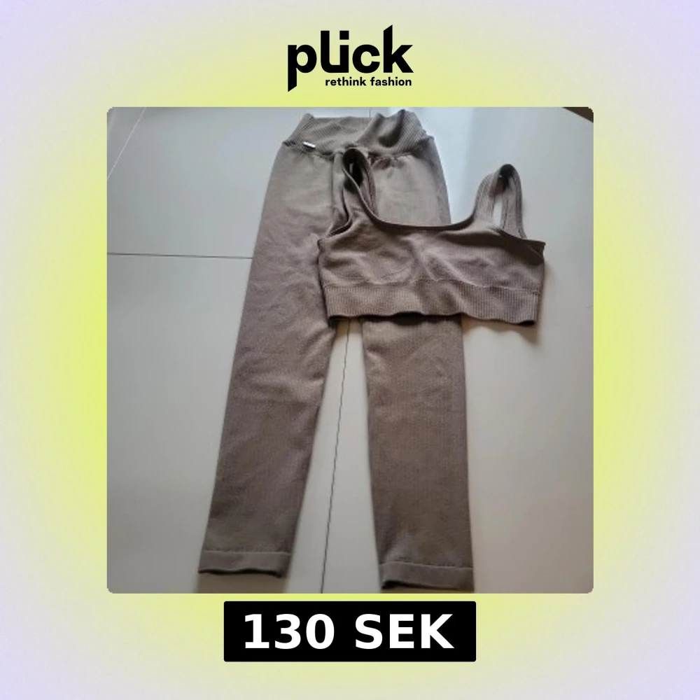 AIMN Säljer en beige ribbad träningstop i storlek S och ett par tights i storlek XS Mjukt och stretchigt, passar både till chill och träning.