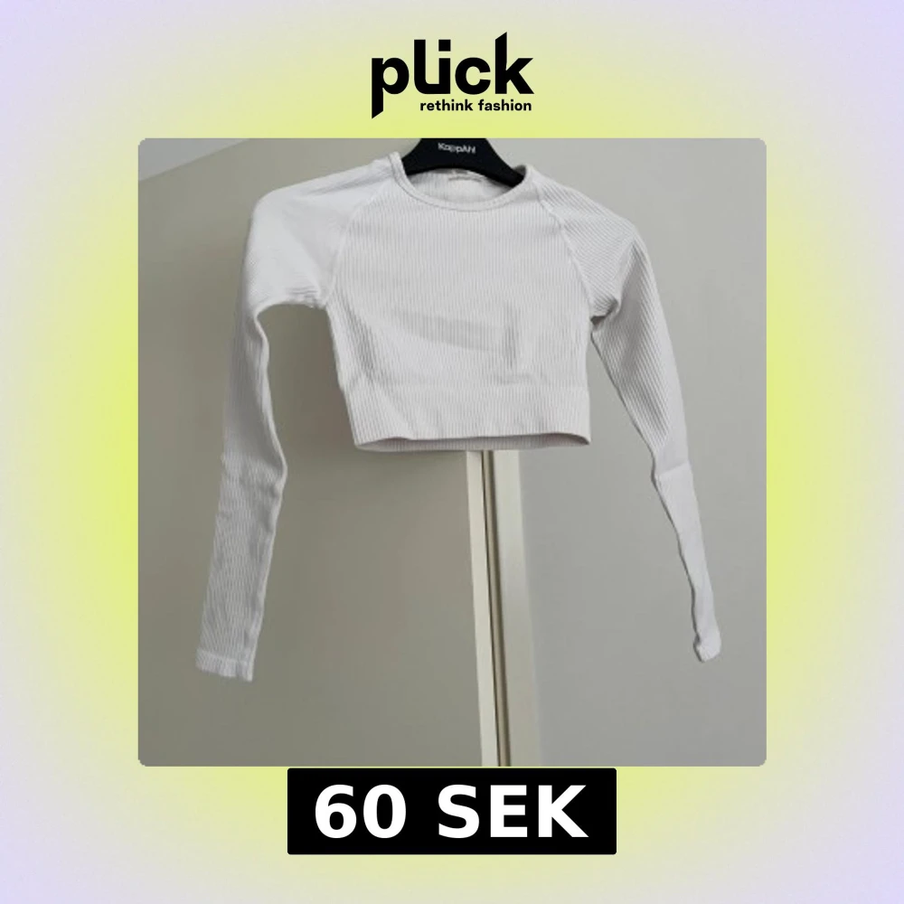Säljer en vit croppad långärmad topp från Aimn. Toppen är ribbad. Materialet är mjukt och stretchigt, vilket gör den bekväm att bära.