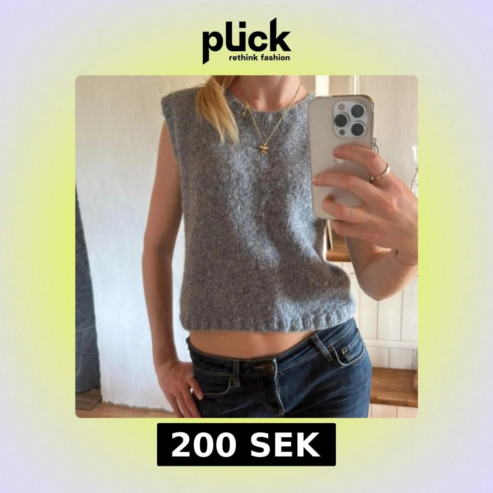 Säljer en mysig blågrå väst. Stickad själv i alpackaull. Knappt använd❤️💕💖