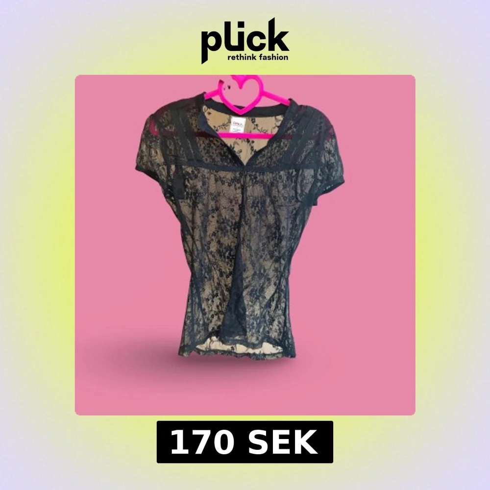 Säljer en svart transparent blus från ONLY i storlek L. Blusen har korta ärmar och är helt täckt av ett blommigt spetsmönster. Den har en liten v-ringning och tunna dekorativa band upptill. Perfekt för dig som gillar detaljer och vill sticka ut.