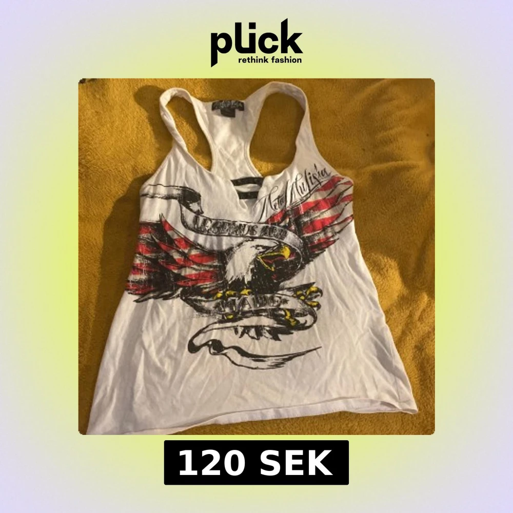 Cool vit linnetopp från Metal Mulisha med stort tryck av en örn och texten 'Legends Are Made'. Toppen har svarta nitar vid halsringningen och detaljer i rött, svart och gult. Perfekt för dig som gillar edgy streetstyle och statement-plagg.