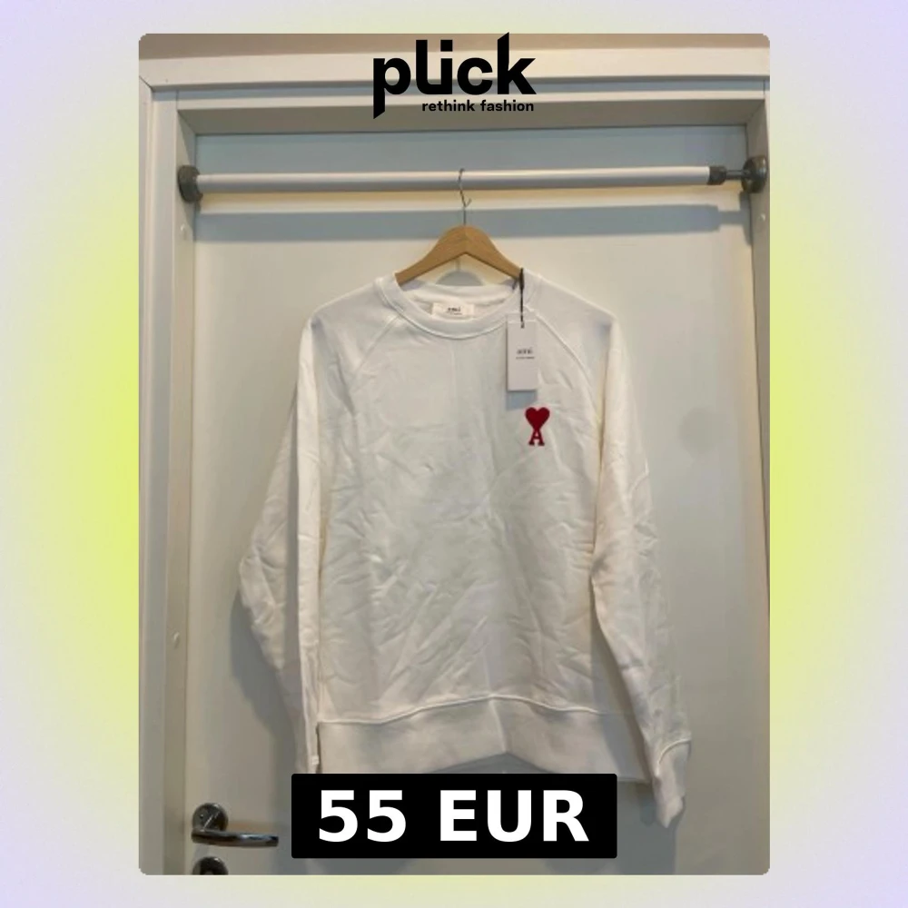 Vit sweatshirt från Ami Paris med röd broderad hjärtdetalj och bokstaven A på bröstet. Tröjan har rund halsringning och långa ärmar. Perfekt för en avslappnad och stilren look.