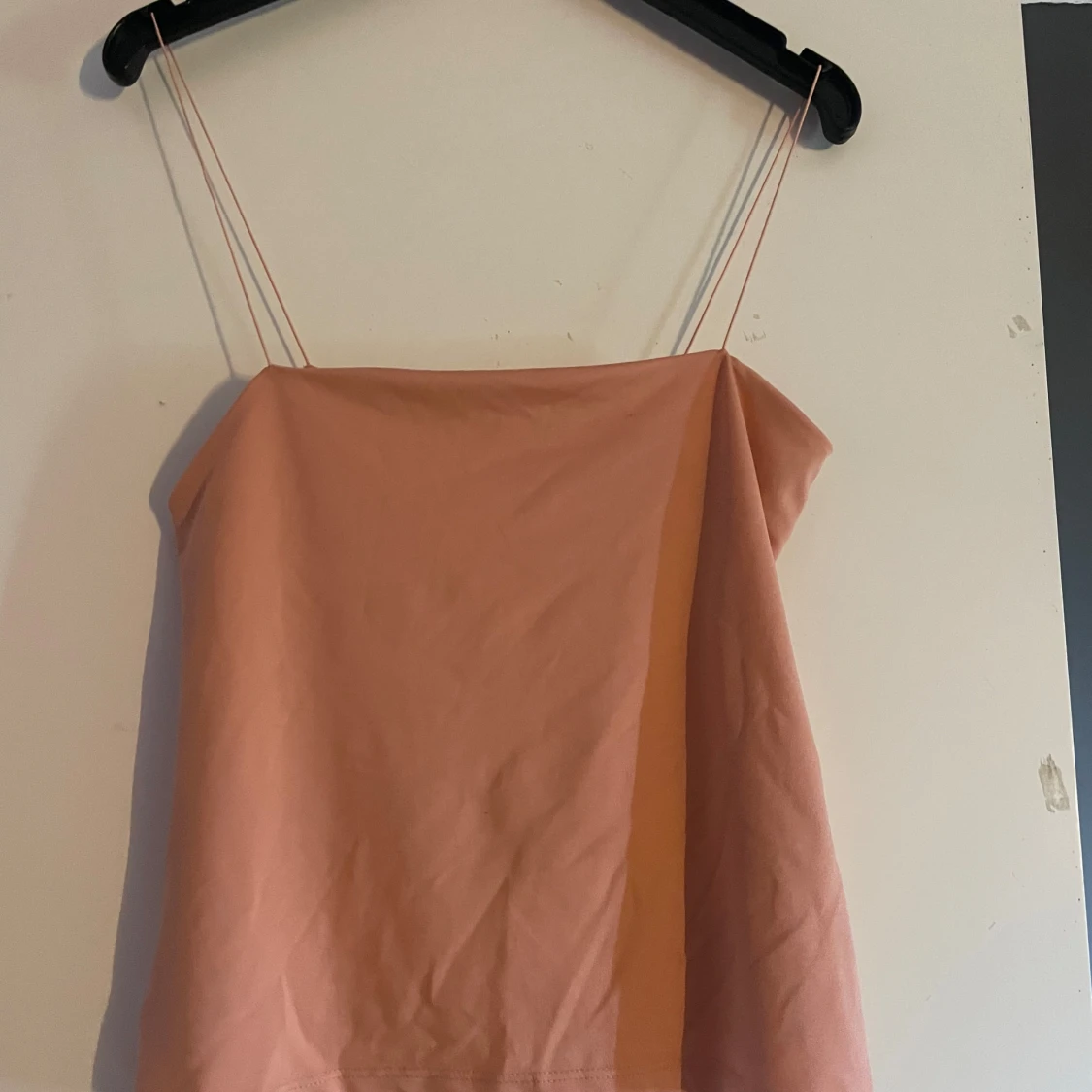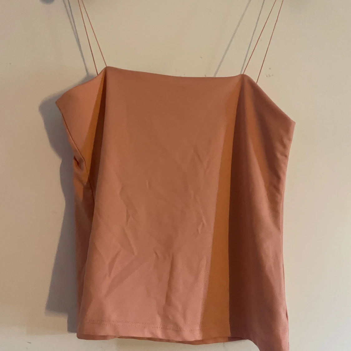Säljer en stilren persikofärgad linnetopp från Amisu med tunna axelband. Toppen har en rak och enkel passform, perfekt för varma dagar. Tillverkad i mjukt material som känns skönt mot huden. Snygg att matcha med jeans eller kjol.