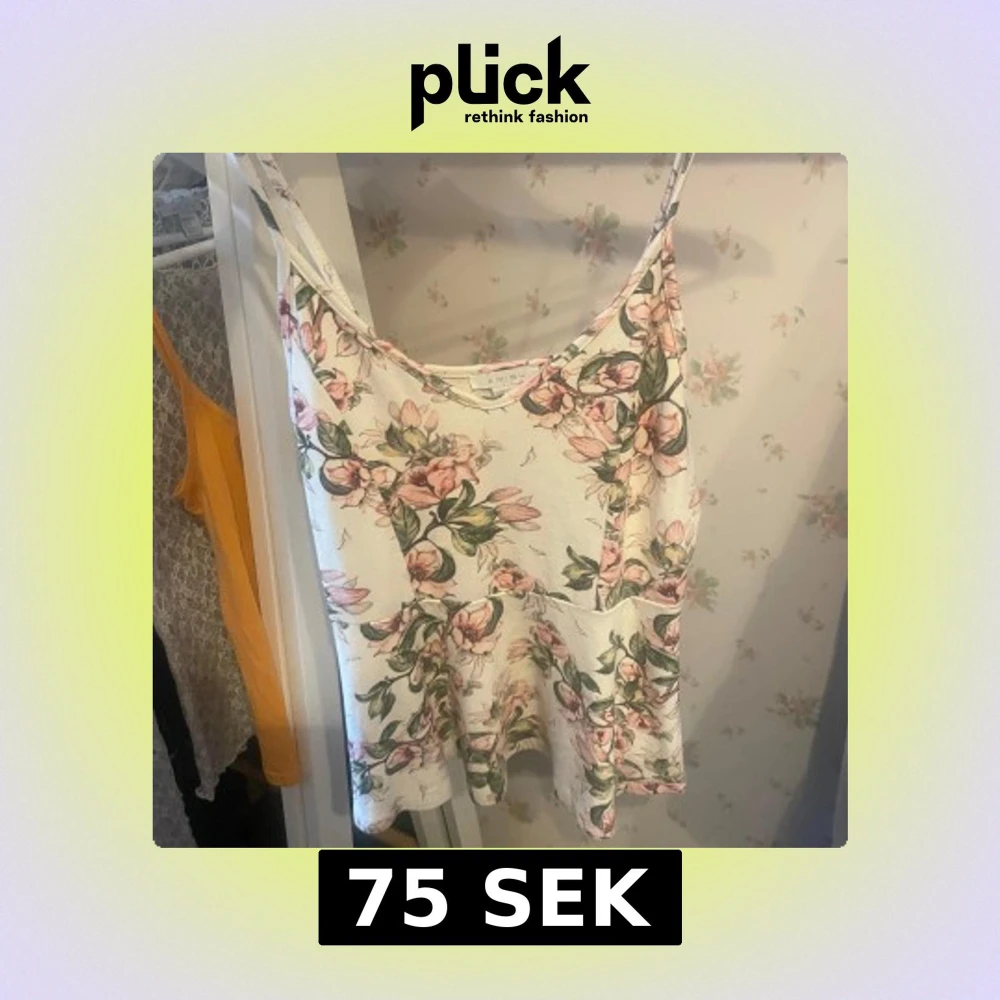 Supersöt linnetopp från Amisu med smala axelband och blommigt mönster i rosa och grönt på vit botten. Toppen har en lätt utsvängd passform och är perfekt för varma dagar. Materialet känns mjukt och luftigt, vilket gör den extra skön att bära.