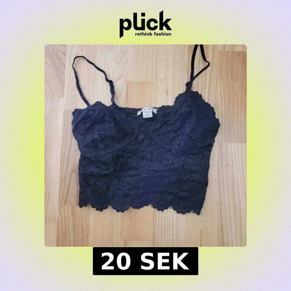 Svart croppat linne från Amisu med tunna justerbara axelband och vacker spets över hela toppen.