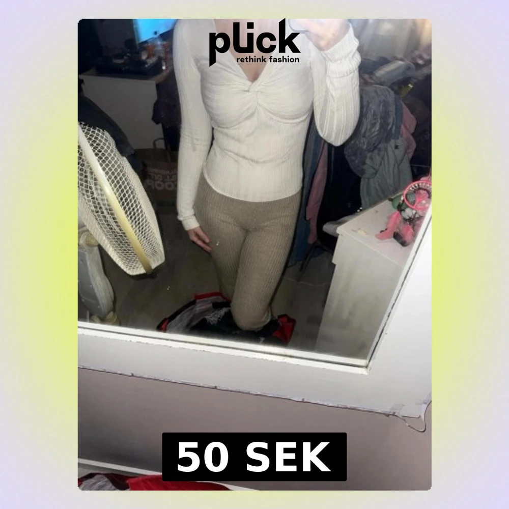 Säljer en vit ribbad topp med lång ärm och snygg twist-detalj framtill. Toppen har v-ringad hals och är figurnära i passformen. Materialet känns mjukt och stretchigt, perfekt att styla med jeans eller kjol. Passar dig som gillar stilrena och trendiga plagg.