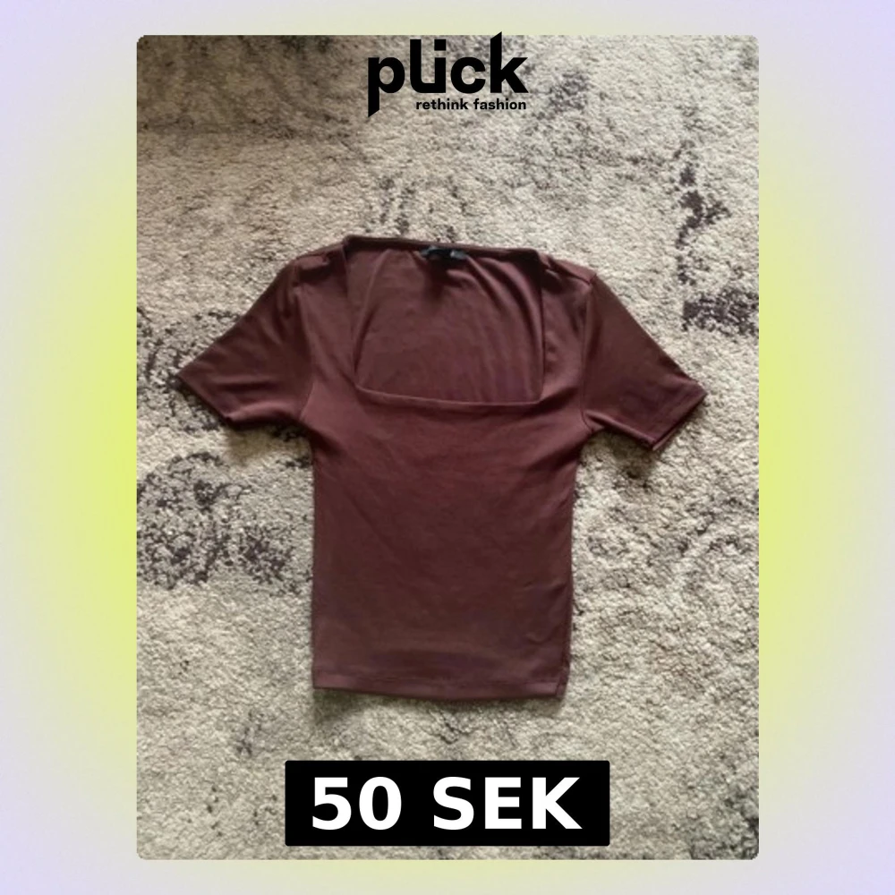 Säljer en brun topp med korta ärmar och snygg fyrkantig halsringning. Toppens passform är tight och den är gjord i mjukt bomullsmaterial. Perfekt för dig som gillar minimalistisk stil och vill ha en enkel men trendig topp i garderoben.