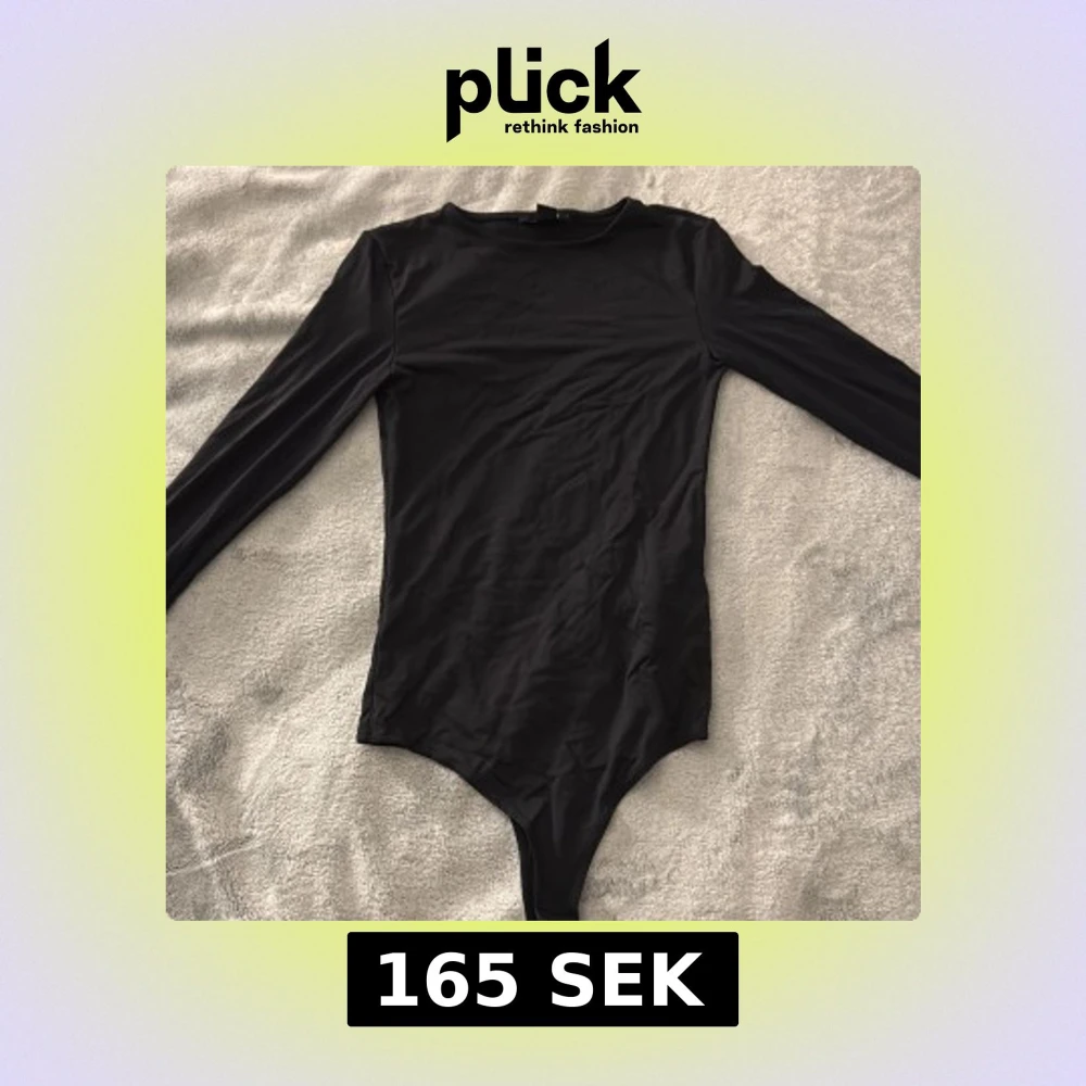 Svart, stilren långärmad body från Amisu i storlek XS. Gjord i ett mjukt och stretchigt syntetmaterial som sitter tight mot kroppen. Aldrig använd 💕