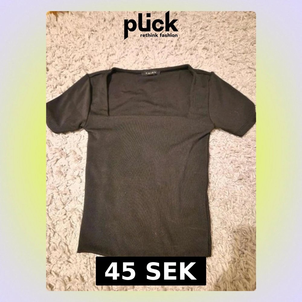 Svart ribbad topp från Amisu i storlek XXS. Toppen har en fyrkantig halsringning och korta ärmar, vilket ger en clean och modern vibe. Materialet är mjukt och stretchigt, perfekt för att styla med dina favoritjeans eller kjol.