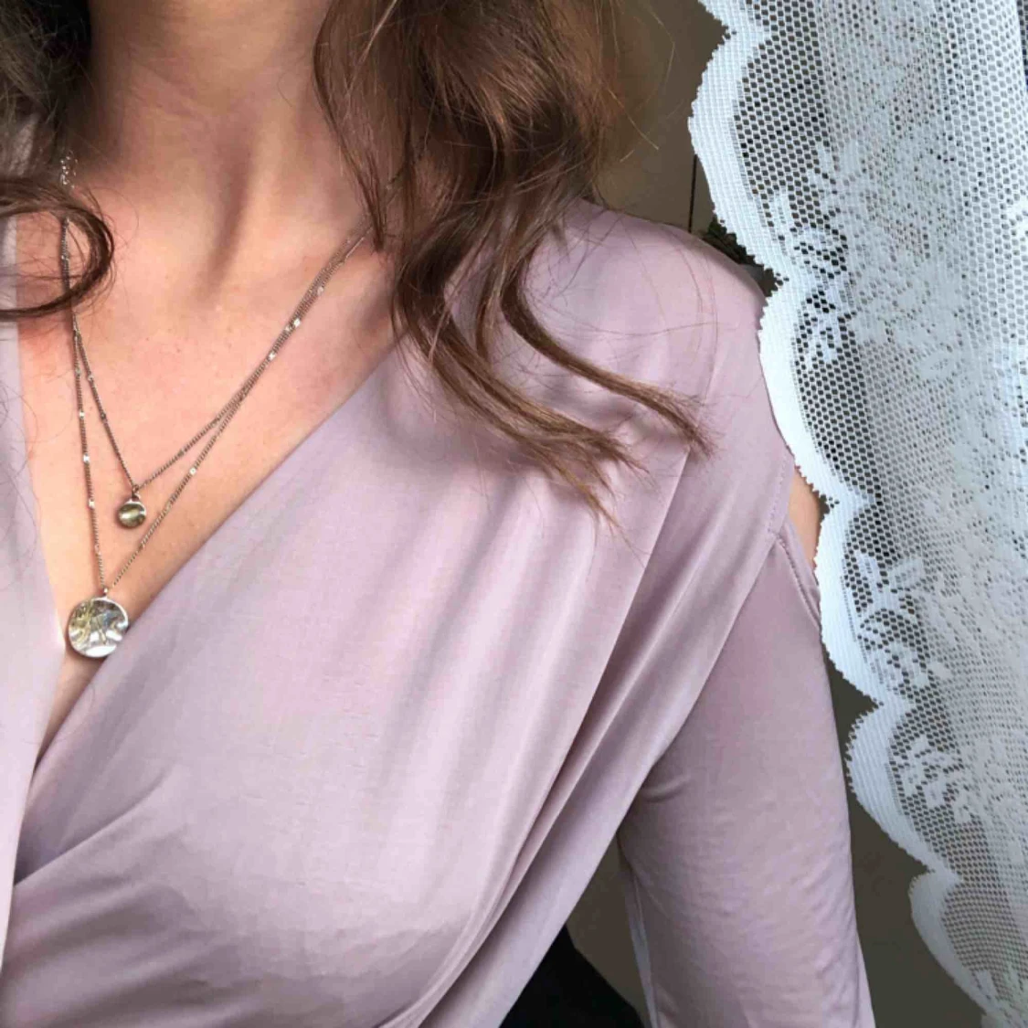 Skitsnygg lila/rosa tröja festtröja!! Har perfekt urringning och sitter skitsnyggt i armarna. Är en body vilket gör att den sitter bra på. Du står för frakten.