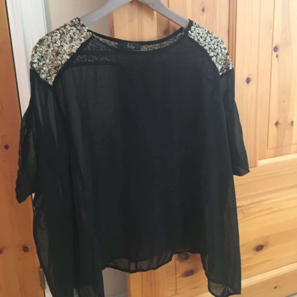 Tunn topp med guldiga paljetter. Kan postas, köparen betalar frakten, eller mötas upp i Kungsbacka.
