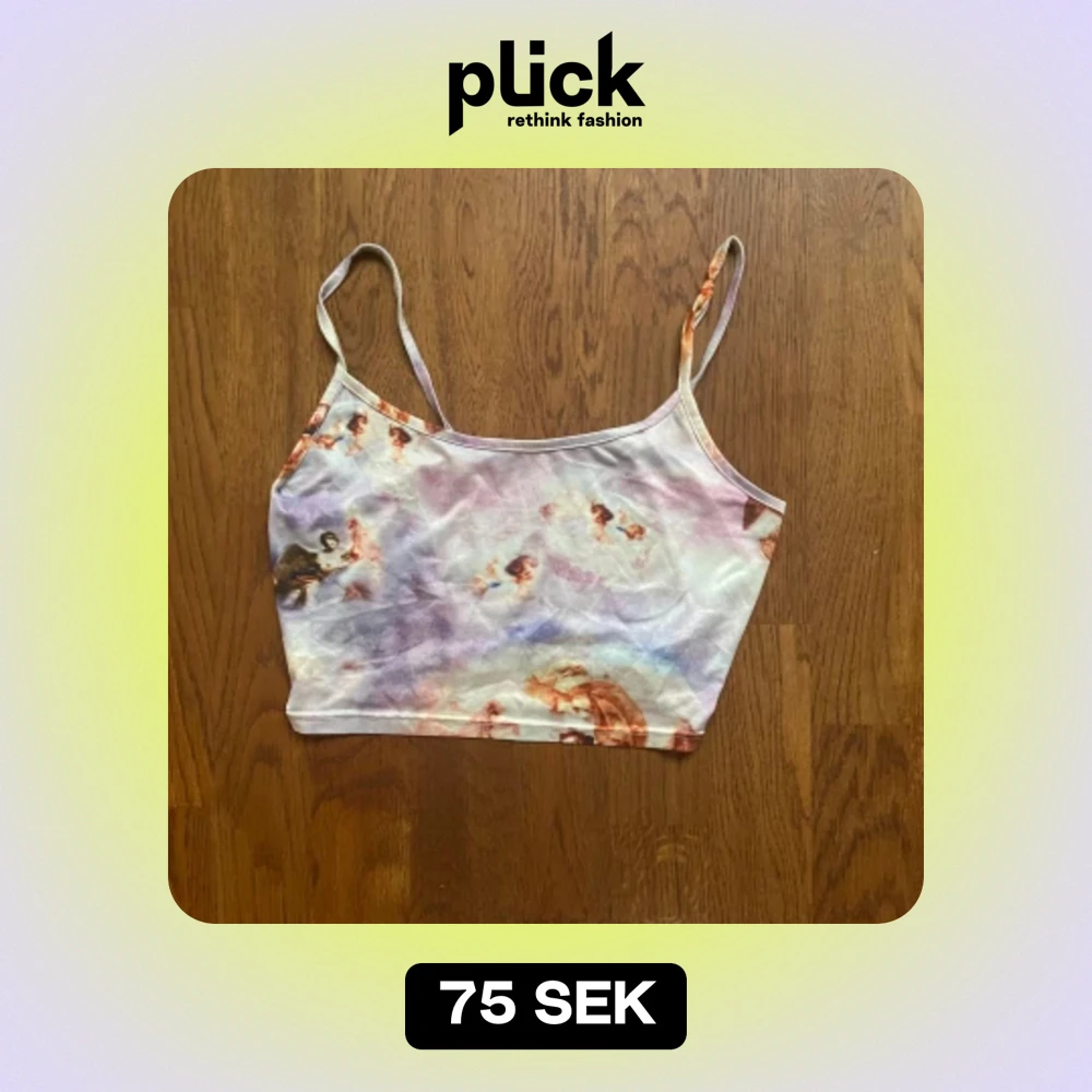 Ett kort linne med änglar på sig i storlek S