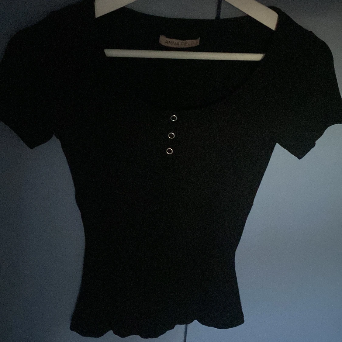 Säljer denna svarta t-shirt ifrån Anna field, i storlek xs,använt inte många gånger ,jätte bra skick, köpte för 400kr,men säljer för 300kr💕