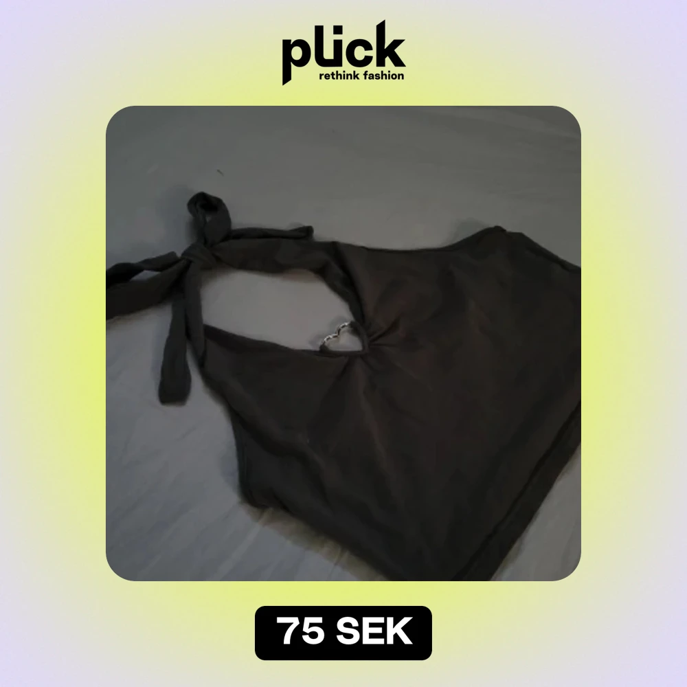 Superfin halter top i mörkgrå med en hjärtdetalj i mitten och ärmar man knytar själv, helt oanvänd🩶🩶