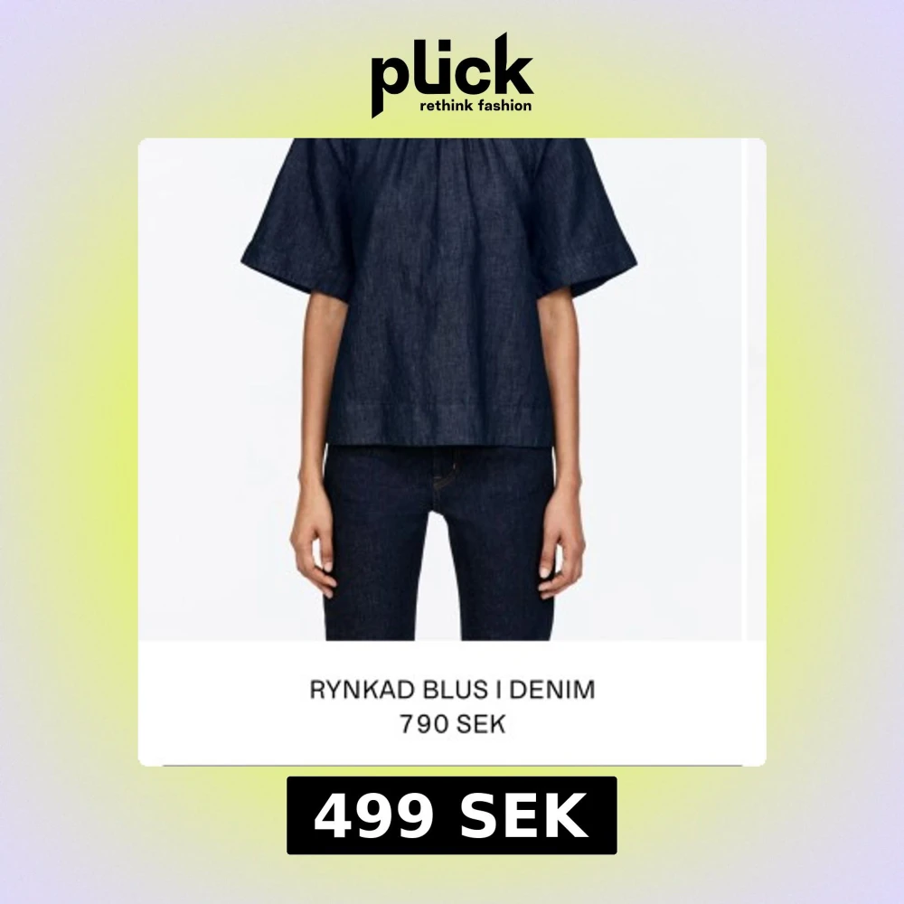 Säljer en mörkblå blus i denim med rynkade detaljer och breda korta ärmar. Blusen har öppen rygg med snygg knytning upptill och en loose passform som ger en chill vibe. Perfekt för dig som gillar stilren och enkel look med en twist.