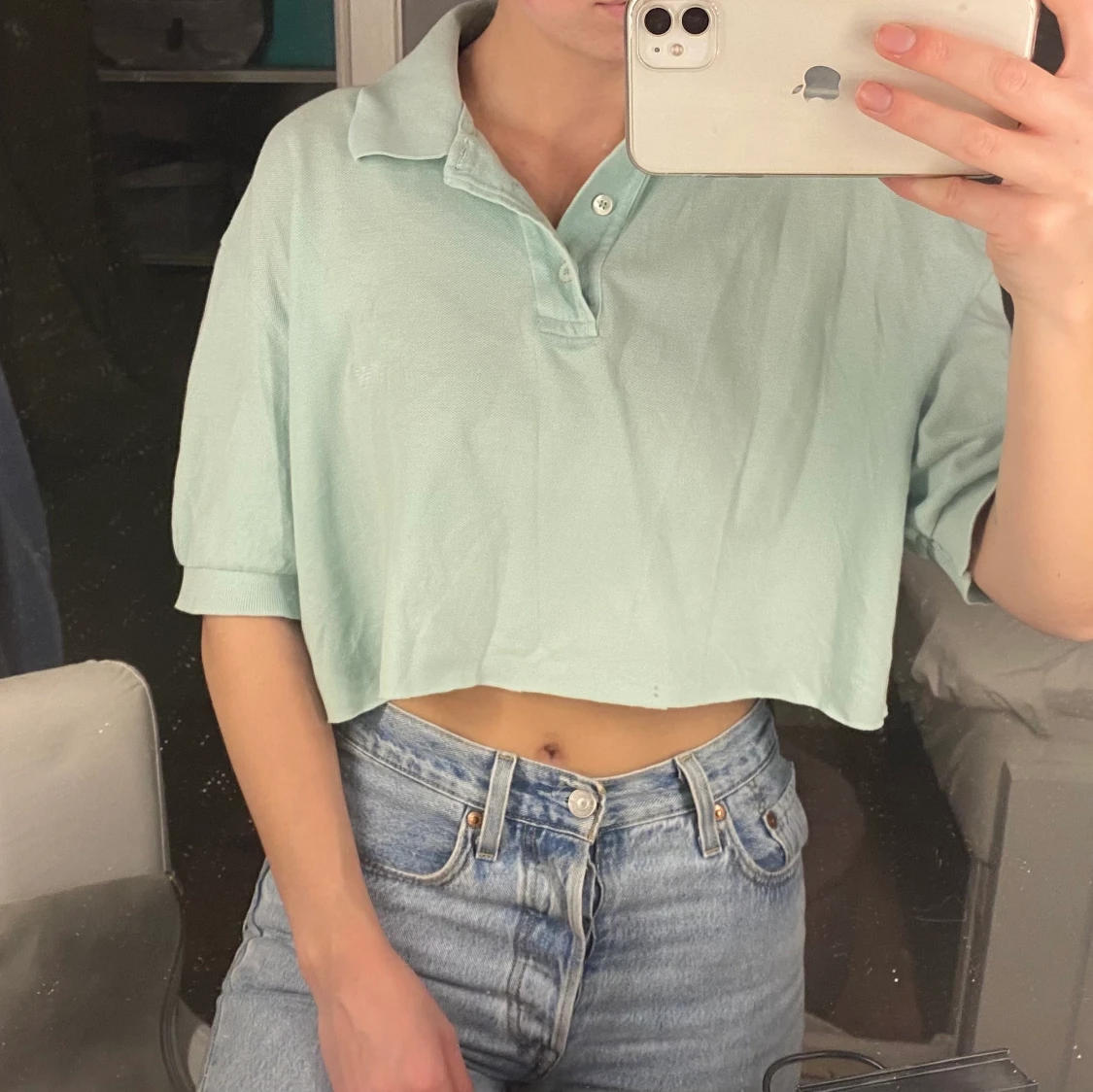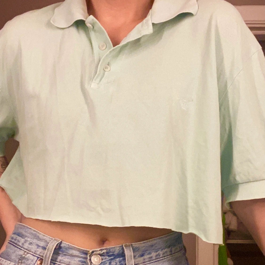 Säljer denna sjukt fina piké från Armani, det är i en mintgrön färg. Toppen är avklippt till en croptop. Skön passform och aldrig använd från mitt håll (köpt second hand)❤️köpare står för frakt! Kombinera med något annat jag säljer för ett gött paketpris!