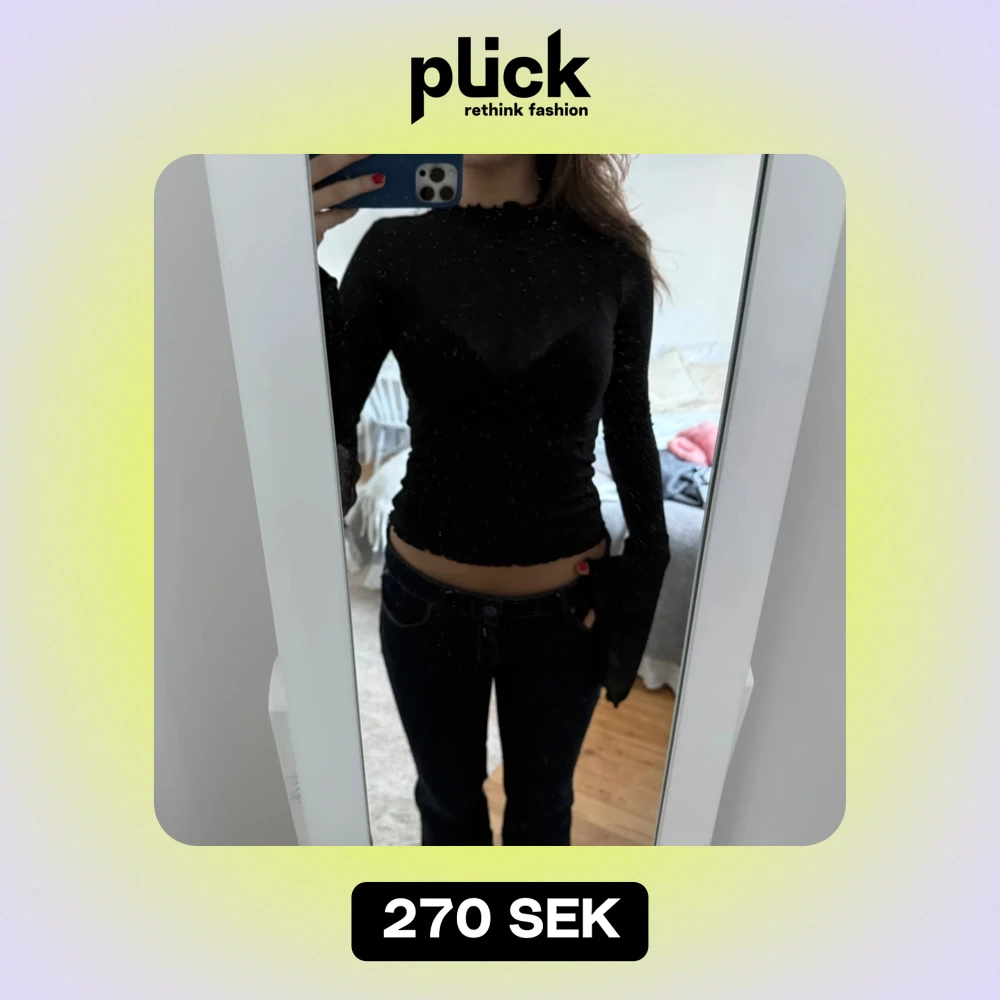 Genomskinlig topp med utsvängda armar, använd en gång. Jätte bra nu till vintern och nyår!