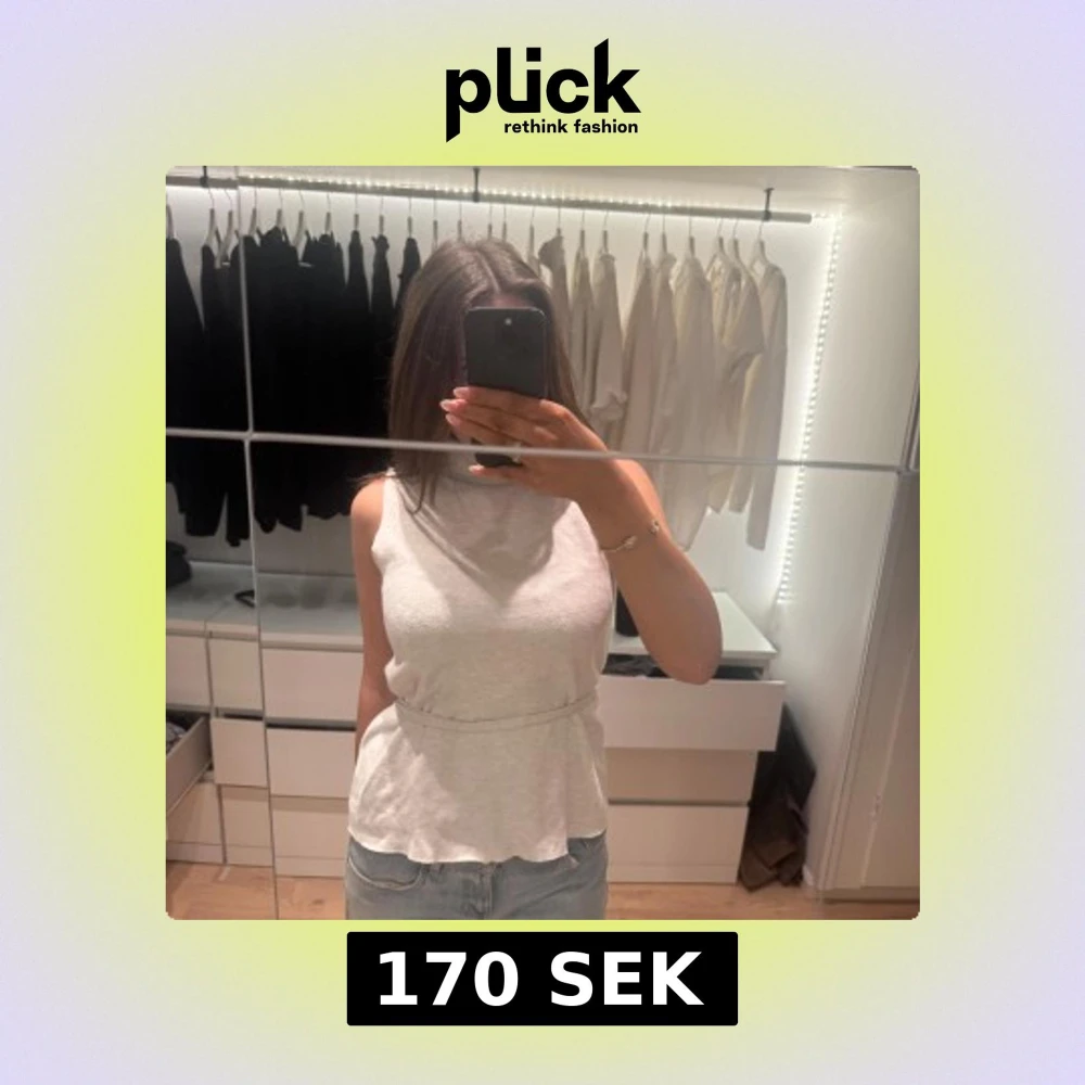 Säljer en stilren ärmlös topp med knytband i midjan. Man kan ta bort snöret och även knyta de de vid magen istplet för ryggen om man vill.