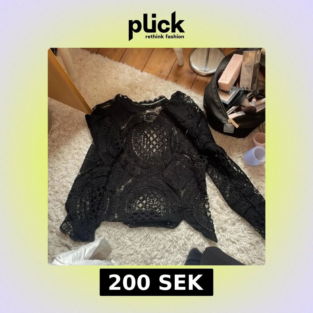 Säljer en svart blus i spets med lång ärm och vackra cirkulära broderade detaljer. Blusen är genombruten och har en elegant, bohemisk känsla. Perfekt att styla med jeans eller kjol för en cool look.