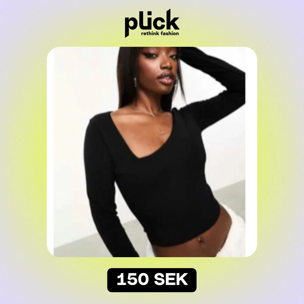 Asymmetrisk top med långa ärmar och djup halsringning 🖤