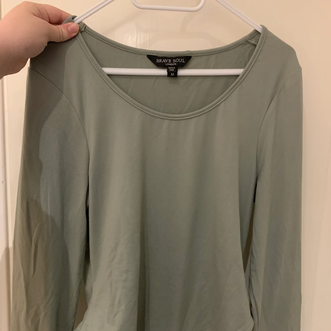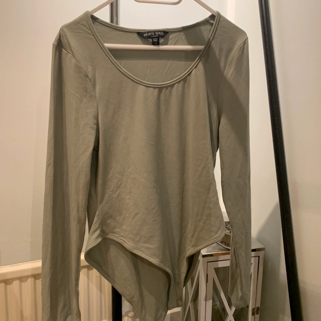 Pastell grön body i storlek M. Aldrig använd så helt i nyskick! Riktigt fin färg i sage green. Skulle säga att den både passar S och M.