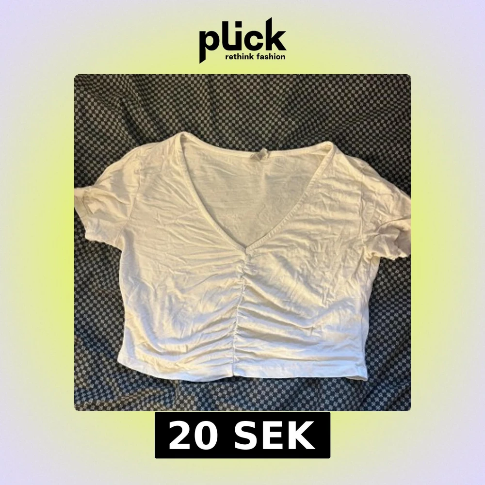 Säljer en vit croppad topp från ASOS med snygg v-ringning och snörning framtill som ger en cool rynkad effekt. Toppen har korta ärmar och är gjord i mjuk bomull, perfekt för att styla med jeans eller kjol. Enkel och fräsch design som funkar året runt.